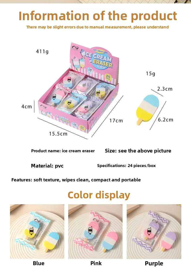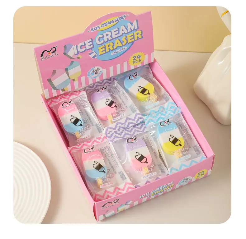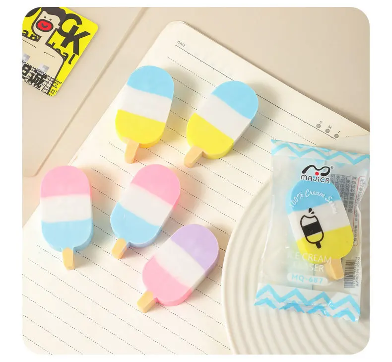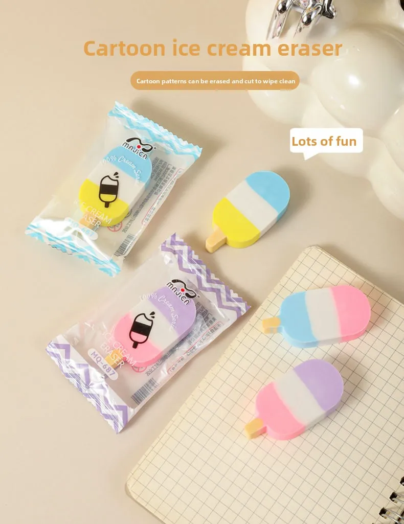 2026 New Cream Ice Cream Eraser Colorful Ice Cream Fun Stationery Creative Snacks Eraser Wholesale Interesting and Practical