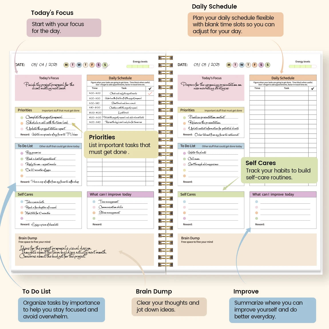 With its comprehensive schedule and planning features, this journal is an excellent tool for time management.