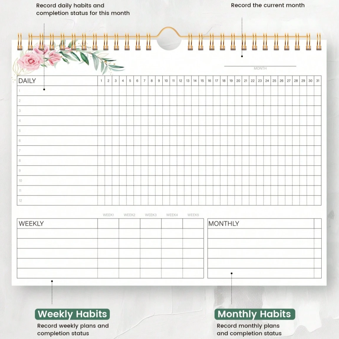Floral Habit Tracker Calendar|Monthly Daily Habit Planner|Spiral Desk Organizer for Goals&Routines|Aesthetic Motivation Journal