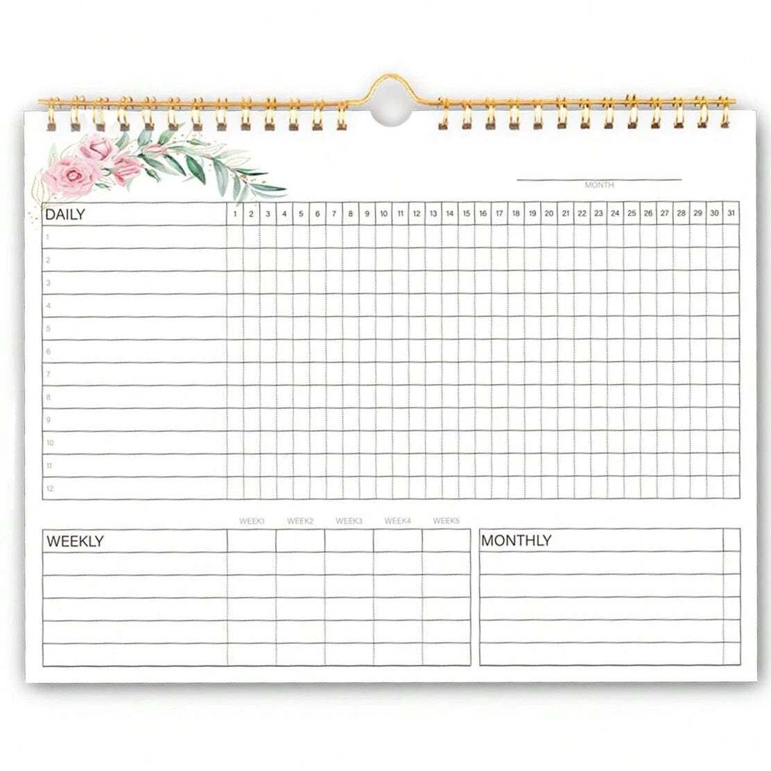 Floral Habit Tracker Calendar|Monthly Daily Habit Planner|Spiral Desk Organizer for Goals&Routines|Aesthetic Motivation Journal